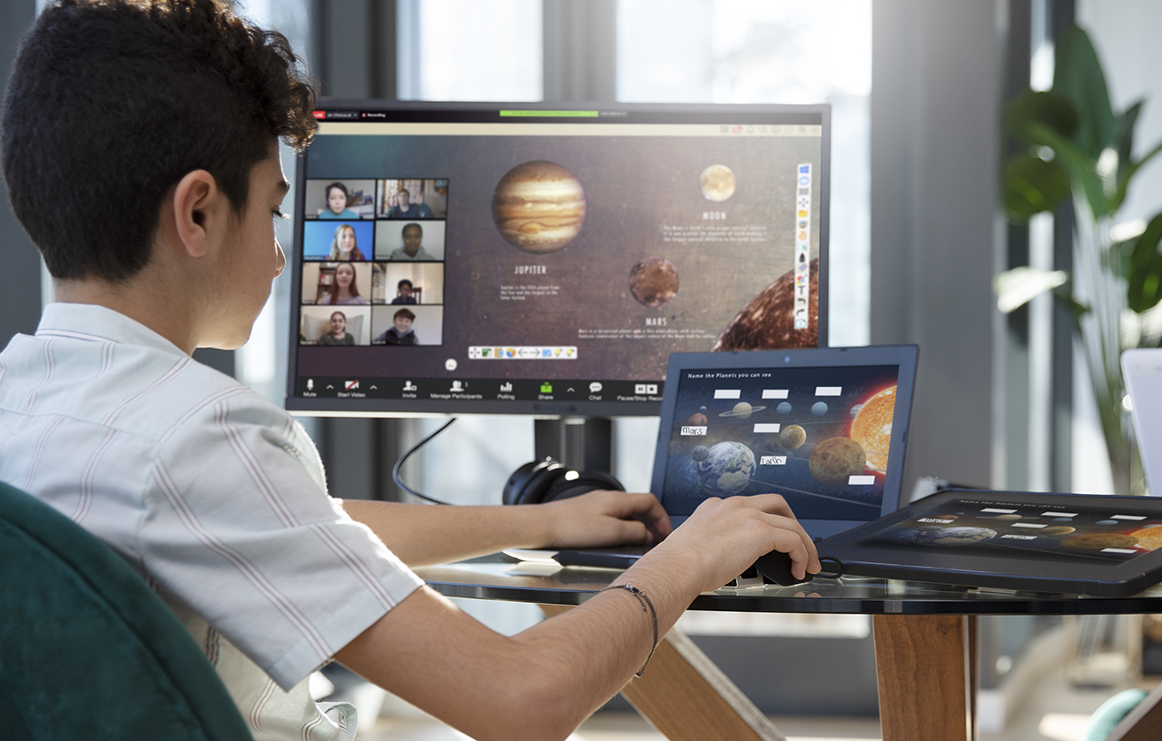 Students needs their own space to learn and play even on shared intereactive devices. Exclusively on ViewBoards, myViewBoard can split into up to six Smallboard workspaces for students to independently create and share together.
